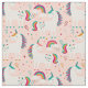 White Unicorn with Rainbow on Pink Fabric