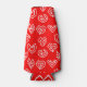 This bottle cooler has a mid-century modern Valentine’s design of scattered white heart mazes on a field of red.