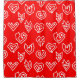 This shower curtain has a mid-century modern Valentine’s design of scattered white heart mazes on a field of red.