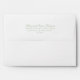 This envelope has a white exterior with a blush pink and green floral watercolor design on the inside and flap. The return address is on the outside flap in a green all-caps serif font. This envelope coordinates with the other products in the Sweet Crest Monogram Wedding Collection.