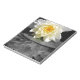 Black and white photograph with yellow highlight of a waterlily on our tiny pond after the rain.