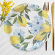 White Watercolor Lemon and Flower Paper Plates