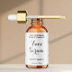This waterproof dropper bottle product label features a white background with black text. This label measures 2.6 inches by 1.5 inches (66 mm by 38 mm) and is a great choice when you are looking to package essential oils, fragrance oils, beard oils, face serums, hair serums, and products requiring a durable label.
