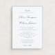 A refined white wedding invitation accented with soft light blue typography and a delicate border. This design blends classic elegance with a fresh, airy feel, making it ideal for formal weddings, traditional ceremonies, and timeless celebrations.