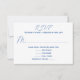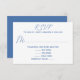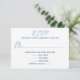 White wedding reply cards with blue text. Pretty, medium blue printed fonts are used in the templates where a menu / entree selection can be added for guests. Or, use a simple “will attend” and “will not attend” as needed. The card has no design, only wording. Reverse is solid matching blue. This card is also offered as an instant download.