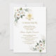 White Wild Roses Gold Glitter First Communion Invitation