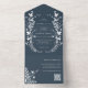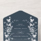 White Wildflower Silhouette Wreath Wedding Navy All In One Invitation