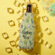 White wine. Bottle, glass, corkscrew and grapes. Seamless pattern. Custom background color. Custom text.