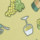 White wine. Bottle, glass, corkscrew and grapes. Seamless pattern. Custom background color.