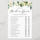 Guess who said it. Was it the bride or groom? | Add these fun and playful bridal shower He Said She Said game card to your event. This customizable Bride or Groom game card features watercolor illustrations of white flowers and greenery. Personalize by adding your questions. This white floral bridal shower guessing game card is perfect for winter and spring bridal showers and wedding showers.
