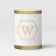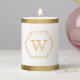 Template for your monogram, large golden letter inside a hexagon shaped frame. Elegant white background.
