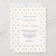 Plain white envelopes are included with paper invitations and will come to fit the invitation size you select. If you don’t need the envelopes, you may choose to not receive them by selecting the dropdown below "Envelopes" and choosing "None." If you’d like to have a design on your envelopes, you can browse all of these available envelopes to find the design that complements your White With Gold Polka Dots Invitation.
