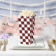 Serve your treats in style with these white popcorn favor boxes featuring a maroon square pattern. The crisp white background and bold maroon squares create a modern, eye-catching design. Perfect for parties, weddings, or special events, these boxes are durable, easy to assemble, and ideal for holding popcorn or small snacks.