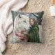 White Wolf Redhead Druid Winter Berries Fantasy Ar Throw Pillow