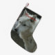 Perfect! Exactly what I ordered! I uploaded a picture of my blue chow, and the screen print was incredible. the back side of the stocking was the red and black checkered print. my puppy's name was also printed on the cuff of the stocking. PERFECT! Highly recommend this product! My puppy's name was screen printed onto the cuff of the stocking, the font was perfect!