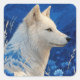White Wolf with Blue Floral Fur Pattern Art Square Sticker
