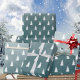 Christmas holiday gift wrapping paper featuring a white spruce tree in a repeat pattern on a blue spruce ombre forest background.