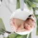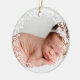 Christmas ornament to which you can add your own photo in honor of your baby's first Christmas. It's decorated with a simple white wreath with leaves and berries. Add your child's name and birth stats on the back in white against a lovely shade of pink.