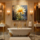 A white and yellow flower basks in the warmth of the sun, radiating vibrant energy onto the canvas. Bold, expressive brushstrokes dance across the surface, capturing the essence of nature's beauty in a symphony of color and light. The white petals of the flower glow with an ethereal luminosity, illuminated by the golden rays of the sun. Shades of yellow burst forth, infusing the scene with warmth and vitality, while streaks of orange add depth and contrast. The background shimmers with dynamic hues, evoking a sense of movement and atmosphere.