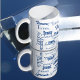 Nice white personalized mug. Create your own coffee-mug... it's easy and fun to do... your own name on a simple blue pattern design