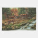 Whitetail doe and buck walking through the forest along a cascading stream of rocks and waterfalls. Realistic artwork created from an original oil painting by wildlife and equine artist Crista S. Forest.