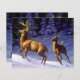 Whitetail doe and buck in winter. The deer are startled by a nearby sound and take off dashing through the snow. Realistic artwork created from an original oil painting by wildlife and equine artist Crista S. Forest.