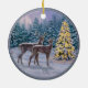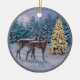 Whitetail Deer & Christmas Tree Winter Scene Ceramic Ornament