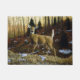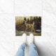 A whitetail doe is startled by your presence. Fall leaves and a light dusting of snow indicate it is late autumn in the forest. Realistic artwork created from an original oil painting by equine and wildlife artist Crista S. Forest.