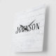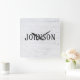 whitewashed wood with family name square wall clock