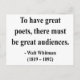"To have great poets, there must be great audiences." - Walt Whitman