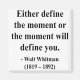 "Either define the moment or the moment will define you." - Walt Whitman