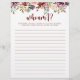 This who am I rustic floral bridal shower game is a perfect activity for a simple bridal shower celebration. The design features burgundy, pink and blush watercolor flowers with green leaves in a brownish stained background.