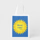 This reusable bag features a quote from Pope Francis within a yellow sun on a blue background. The colors are a part of the Pontiff's Coat of Arms. The text reads: Who am I to judge? It is an example of the greatness and humility of this very special man.