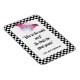 Whimsical digital art features black and white checkerboard frame, watercolor pink butterfly, and center quote from Alice in Wonderland which reads: "Who in the world am I? Ah, that's the great puzzle."