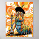 This is a great quality poster with eye-catching design of a colorful, hookah pipe smoking, caterpillar in a beret and glasses. It has a 1960's orange, yellow, and white, psychedelic background and the question Who Are You?