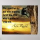 "The question is not who is going to let me, it is who is going to stop me." Ayn Rand quote on a beautiful picture of a man climbing a mountain as the sun sets in the background.