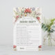 Who Knows Daddy Best? Baby Shower Game Card featuring a whimsical watercolor design with red toadstool mushrooms, wildflowers, and soft greenery. Cute baby shower game and cards for guests for a forest mushrooms themed baby shower - perfect for a Whimsical, cute celebration. Guests answer fun questions about the dad-to-be and tally their score, making an easy, interactive activity for game tables, favor displays, and woodland/boho baby shower decor.