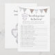 A fun game for the gender reveal party is the Who knows daddy-to-be? game. This game features a silver gray and brown banner at top and a standing baby elephant. On the reverse is a baby elephant smiling and lifting its trunk upward with templates.