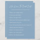 So pleased with this product! It showed up on time and in perfect condition. Affordable and of good quality. I ordered 30 for my friend’s bridal shower and they were all accounted for. The bride LOVED them and we had a lot of fun customizing the answers. Would recommend to anyone hosting a bridal shower or bachelorette party with people who like to play fun games! All the guests got really into it! Spot on colors and the paper felt of good quality, as well, though perhaps could be a bit thicker in general. (I ordered the thickest option)
