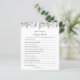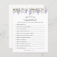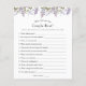 Bridal shower game card featuring watercolor greenery and purple flowers. A fun way to interact with shower guests.