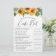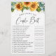 Bridal shower "who knows the couple best" game sheet featuring a cheerful watercolor of sunflowers and sage green eucalyptus greenery and a stylish script. Personalize the questions and add the bride-to-be's name and shower date on the back.