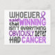 "Whoever Said That Winning Isn’t Everything Obviously Never Had Cancer" (Author Unknown). Share this empowering sentiment while advocating General Cancer awareness with our line of inspiring t-shirts, apparel, and merchandise featuring a variety of text fonts and lavender General Cancer support ribbon. Perfect gift idea for any General Cancer warrior or survivor! Please note that the quotes we incorporate into our designs are either ‘Author Unknown’ or we have obtained permission from the copyright owner.