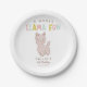 Cute kid's birthday party paper plate featuring illustration of a fluffy llama with pastel color text that says "a whole llama fun" at the top. Great for a girl's birthday party.