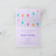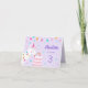 These 3rd birthday party invitations feature a fun whimsical llama design. The llama is wearing a party hat and eating a birthday cake. There is bunting and confetti decorations on a purple background. Personalize the front and inside of this invitation with your own text.