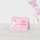 This fun 3rd birthday card features a cute whimsical party llama design with a llama eating a birthday cake. There are candles, bunting and stars and confetti on a pink background. Personalize the front with a name and the inside with your special greeting message.