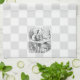 16” x 24” kitchen towel with a vintage "Alice in Wonderland" image of Alice and the Caterpillar who is sitting on a mushroom smoking his hookah pipe while Alice stands on her tiptoes to see him. Gray and white checkerboard background. See matching paper cocktail napkin, cloth placemat, paper placemat and coasters. See the entire Wonderland Kitchen Towel collection in the FOOD/BEV | Linens section.