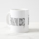 This large coffee mug features a design that uses artistic letters to spell BAD in "Who's BAD?", as in Michael Jackson's song. You can change the color of both the fill and the strokes in "Edit using Design Tool".