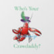 Who's Your Crawdaddy? Red boiled crawfish wearing a purple hat with feather to personalize