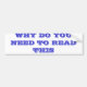 WHY DO YOU NEED TO READ THIS BUMPER STICKER