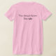 The material is a great quality that is hard to find with most tee shirts. Fabric was not see-through or thin at all, but was also very soft and comfortable. The shirt description states that it runs a little small, so I sized up one size for a perfect fit! I would definitely buy this type of tee shirt again because I love the fit and high quality fabric that I cannot find anywhere else. The printing was perfect and just as pictured. Loved the cute quote and really enjoy the tee in both the quality and design. I love quirky typography designs and funny quotes and I am extremely pleased with the overall quality and value I get at Zazzle!